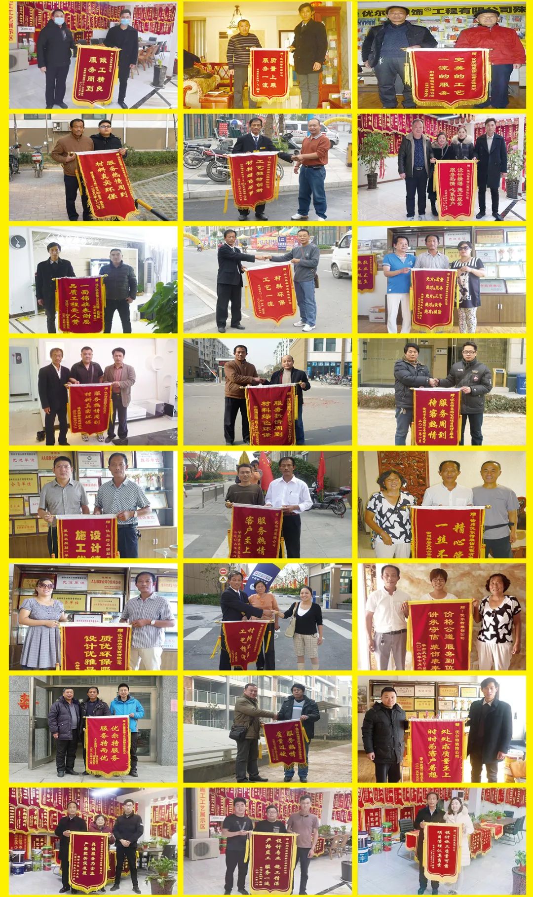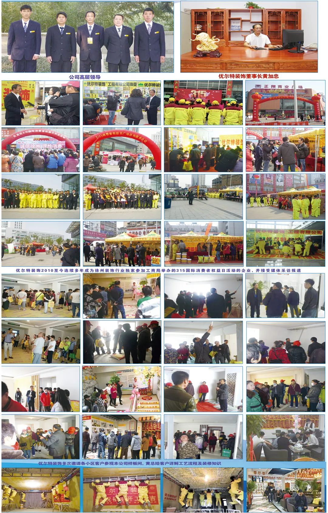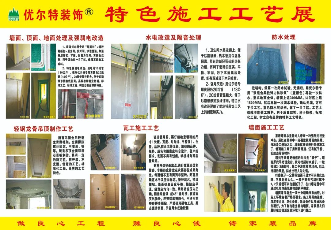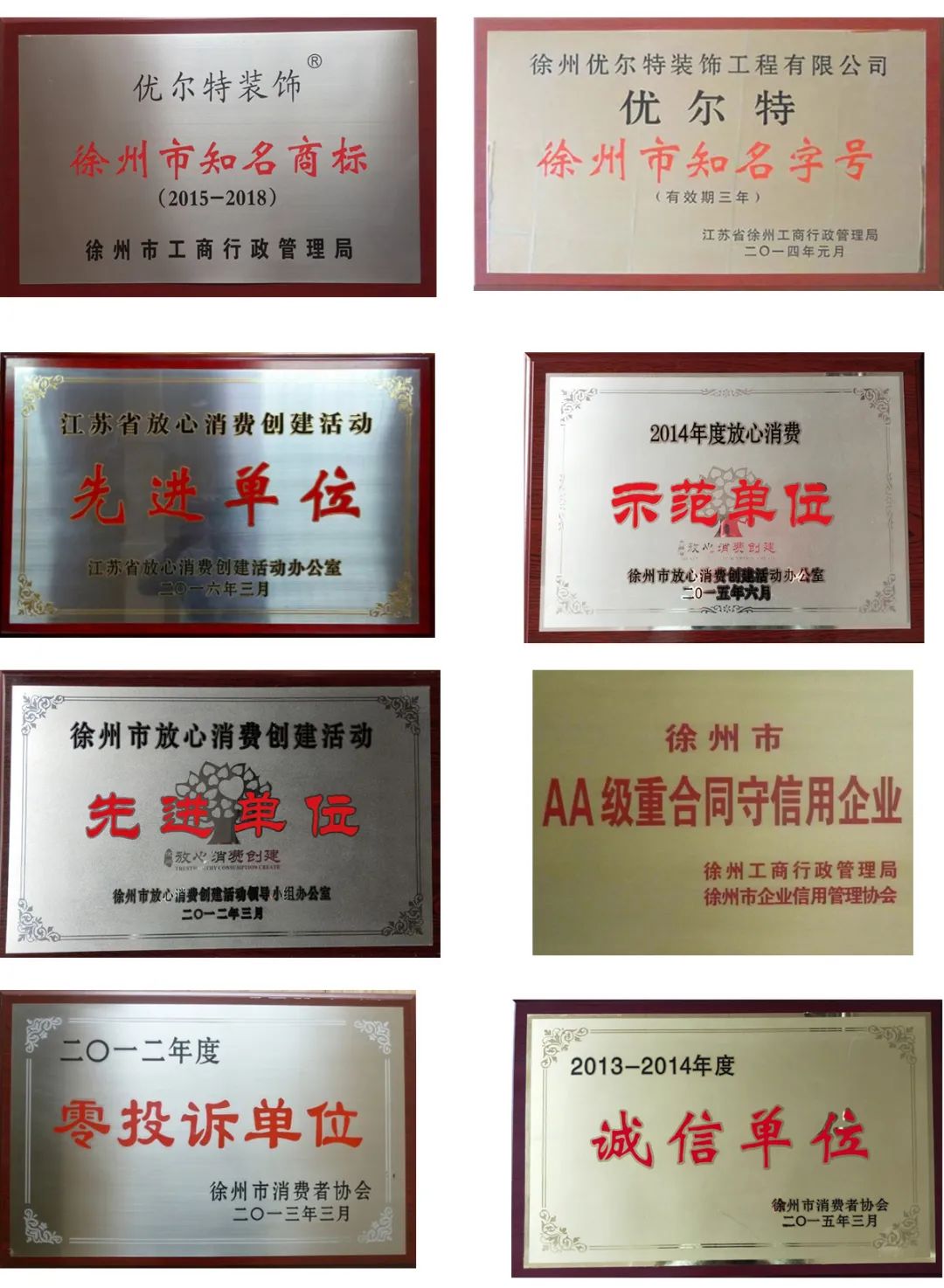 優(yōu)爾特裝飾歷經(jīng)在天津十余年積淀,經(jīng)過數(shù)十年飛速發(fā)展,徐州公司成立于2009年3月,歷經(jīng)十幾年的拼搏努力,現(xiàn)在已發(fā)展為徐州家裝行業(yè)首家擁有“知名商標”、“知名字號”、“徐州市放心消費先進單位”、“徐州市放心消費示范單位”、“江蘇省放心消費先進單位”的裝修公司。獲得各級政府相關(guān)職能部門頒發(fā)的獎牌獎杯無數(shù),獲得裝修業(yè)主贈送的錦旗無數(shù),得到了各級政府、相關(guān)職能部門、各大媒體、業(yè)界人士、廣大業(yè)主的一致肯定和贊揚!公司通過領(lǐng)先的設(shè)計理念,實行科學(xué)的現(xiàn)代化管理,運用工藝精湛的現(xiàn)代裝飾裝修技術(shù),全面引進采用健康環(huán)保的綠色材料,始終貫徹完善的品牌服務(wù)意識,為優(yōu)爾特裝飾換來了更多的口碑與贊譽。