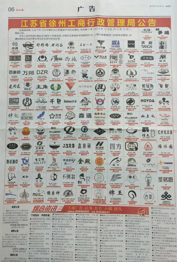 優(yōu)爾特裝飾被徐州市工商管理局認(rèn)定為知名商標(biāo)